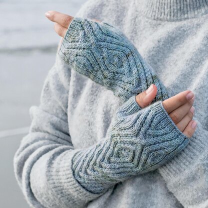 Knit in fingering weight, these mittens are a perfect project for that special skein of sock yarn. The cabled pattern at the back of the hand and stretchy ribs at the palm and thumbs make the mittens fit snugly and comfortably. Cozy fabric keeps your hands warm, while the fingerless design leaves fingers free to work on another project or browse on your phone. The cabled panel opens up beautifully when worn with a bit of negative ease. Instructions are both written and charted. Available in 2 lenghts: short 6.7” / 17cm and long 10” / 25cm, adjustable.