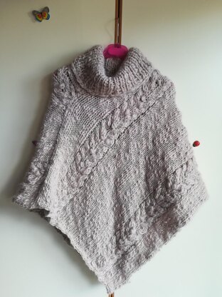 Knitted poncho with cables Yarns: weareknitters 'the wave wool' (5 skeins) Easy pattern with 12 rows repeat. Pattern is written for adult women (up to XL), easy adjustable for bigger size (you need 1 more skein). Sts to know: k, p, 4 stitches cables and puff stitch.