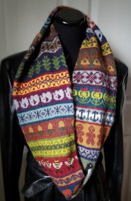 This scarf uses the stranded colorwork technique. It can be made to any size and incorporate as many motifs and colors you desire. No two completed projects will be exactly the same.