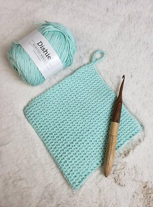 The Universal Dishcloth is a fun crochet dishcloth pattern using the Thermal Stitch with a loop for hanging the cloth! Its a really thick, absorbent dishcloth! The thermal stitch creates a really thick, stiffer fabric, so this dishcloth is perfect for tough scrubbing, or can be used as a pot holder/trivet as well (hence the name). These are crocheted using the soft, squishy Knitpicks Dishie yarn, or any other worsted weight cotton yarn you can achieve gauge with!