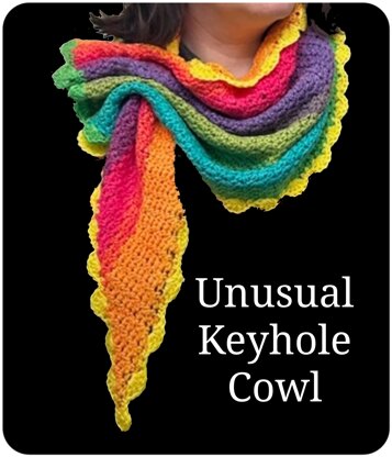 This is a unique Keyhole cowl scarf. When finished all you do is weave the narrow tail through the slits you created. This is made with Lion Brand Mandala yarn (which is very easy to work with.) The whole project takes 1 whole ball of yarn. Very pretty and could be made in any color and any 3 ply yarn that you wish.
