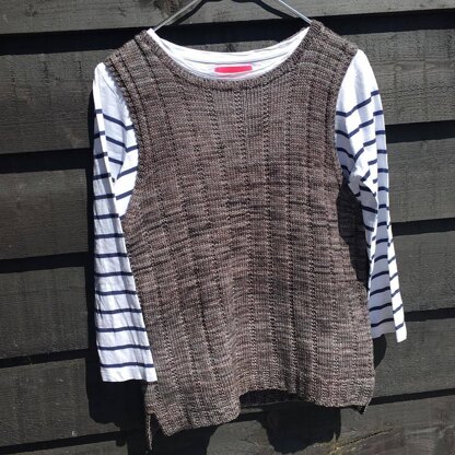 This useful little double knitting slipover has been designed for season-round elegance. Knitted in the round for complete seamlessness, Urban features pretty side vents with optional button trim, a nice underarm ridge detail and integrated armhole borders. The neckband has been cleverly calculated for the ridge detail to follow straight through from the body on all sizes.