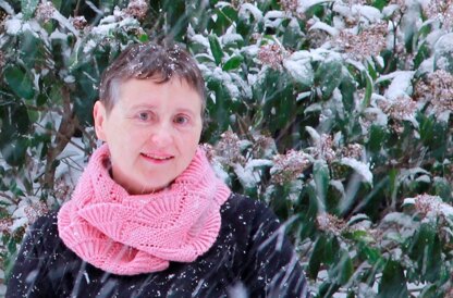 Ursula's path is a Moebius cowl with an innovative construction method: the Half Twist Helix. It is worked flat, from the outer edge towards the centre and then finished with garter stitch Kitchener grafting and a short slip stitched seam. It reworks the classic stitch Bear Tracks into a heavily textured, reversible fabric using twisted rib and garter stitch, with eyelets defining the motif shape.