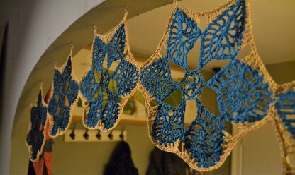 Notions: curtain rod or hooks, stitch marker, tapestry needle