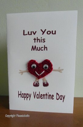 Here is a Valentine Day card, the heart is knitted and the background of the arms, legs and boots are in the pattern for you to print off and glue your knitted heart to.