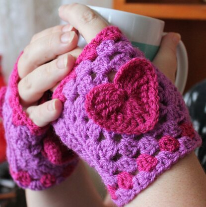 These sweet little hand warmers will make a cute gift for a loved one, any day of the year. Written in US terms, they are quick to make and fun to wear! Pattern includes post stitches, making it ideal for those who have mastered the granny square and looking for something to broaden their stitch knowledge.