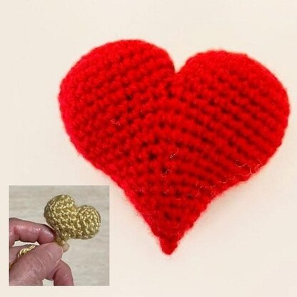 This is a very easy tutorial on how to crochet a Valentine heart. You can use any size hook or yarn. A detailed video tutorial link is included. Tutorial includes instructions for a big heart and a small heart. The small hear is suitable for use with key chains. Heart crocheted with 2.75mm hook is about 4 inches for large heart. Heart crocheted with 2.5mm hook is about 1.5 inches for small heart.