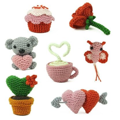 Materials Butterfly Crochet needle (1,75 mm) Pink yarn (for instance Phildar Phil Coton 2 – Meringue 1005) Light pink yarn (for instance Phildar Phil Coton 2 – Rosee 1149) Red yarn (for instance Phildar Phil Coton 2 – Cerise 1038) Gray yarn (for instance Phildar Phil Coton 2 – Silver 1462) Terracotta brown yarn (for instance Phildar Phil Coton 2 – Girafe 71) Dark brown yarn (for instance Phildar Phil Coton 2 – Cacao 81) Green yarn (for instance Phildar Phil Coton 2 – Golf 1348) Off-white yarn (for instance Phildar Phil Coton 2 – Craie 1397) Light brown yarn (for instance Phildar Phil Coton 2 – Seigle 1327) 2 black safety eyes (4 mm) Iron wire (1,1 mm) 2 black safety eyes (4 mm) 1 black safety nose (8 mm) Fiber fill Cardboard or flat plastic