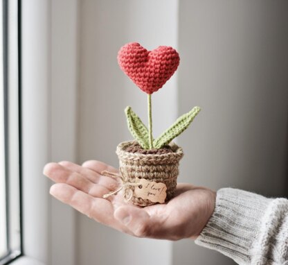 I'm happy to bring you my new crochet pattern, a red heart plant with a love message! It is easy to make, and also the result is beautiful! This cute plant in a pot would be a perfect gift for an anniversary or Valentine's Day. A great accent piece for a windowsill, desk, nightstand, or shelf!