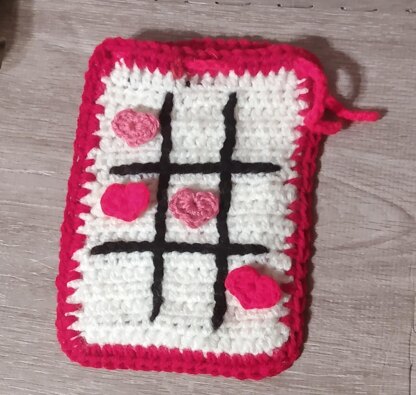 I used Big Twist yarn in red, white, black, and pink. I used a size 5mm hook for the bag and a size 3.5 mm hook for the hearts.