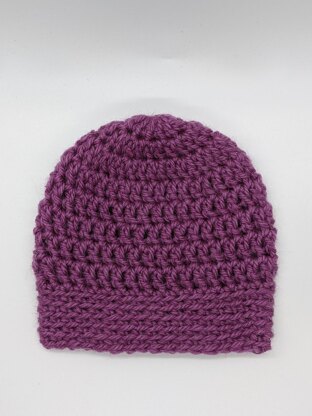 Top-down beginner beanie perfect for the entire family. Available from newborn to adult. Worked in the round using double crochets and single crochets.