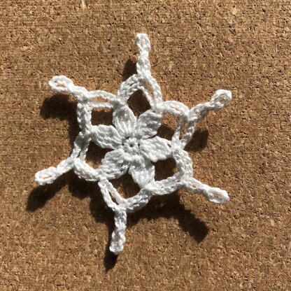 These little snowflakes make great little ornaments for a Christmas tree or to decorate a snowy window. This snowflake works up quick in 3 rounds.