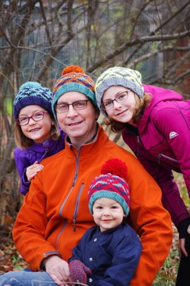 A graphic diamond pattern worked with 3 colors of bulky yarn, this pattern will outfit ages 3-adult. The stranded pattern is easily repeated for a slouchy version and a giant pompom tops off this fast and simple knit.