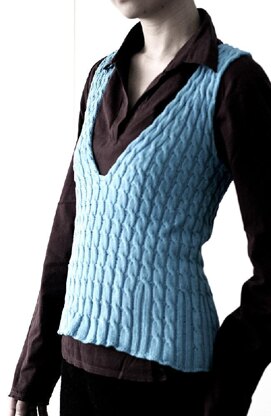 Veneta Shell is a versatile layering top. Its highly textured surface gives its sculptural appeal. The overall 4-st cable is easy to memorize and can be done without a cable needle. Knitted from the bottom up in the round, the only finishing required is the shoulder three-needle bind-off.