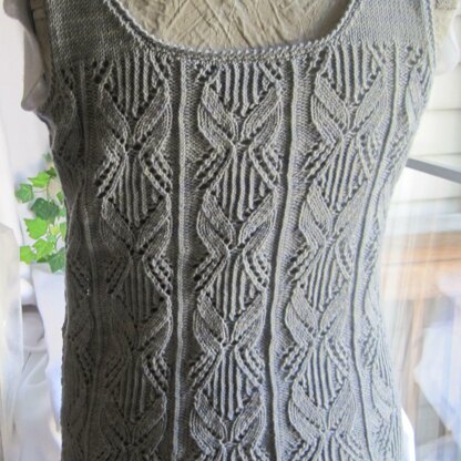 The focal stitch is both written out and charted. The tank is knit in the round until the armholes and then is knitted back and forth.
