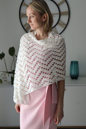 The Verglas shawl is a beautiful delicate lace shawl with a chevron pattern created by V-stitch shells. The recommended yarn is the perfect option for light spring and summer accessories worn close to skin.