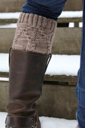 A pair of cabled legwarmers with an intricate medallion detail meant to peek out of the top of your boots or keep you cozy on the sofa. The medallions end in simple cables, which continue down the calf. A quick and easy project for 1-2 skeins of sportweight yarn! You can adjust the length and width of these, depending on your yarn quantity and needs - from little "boot dickies" to long slouchy, cozy legwarmers. I've added a little taper as you knit down for width and this is also easy to adjust to how you would like to wear your legwarmers. The sample pictured is in Plucky Knitter Primo Sport in colour Bisque. Other yarns have been suggested.
