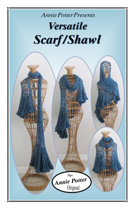 Versatile Shawl/Scarf This easy Fashion pattern falls to a long skinny scarf or expands to a simple shawl or capelet. Worked with a Q hook and worsted weight yarn, the Knit-like pattern allows it to drape beautifully for many variations. An Annie Potter Original! Crochet Pattern