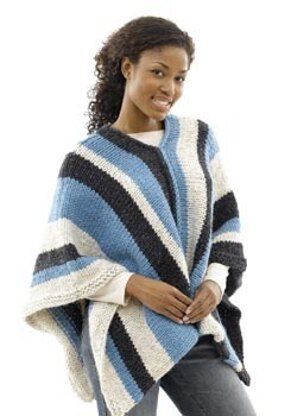 Vertical-Striped Poncho: Woman's Version in Lion Brand Wool-Ease Thick & Quick - 40493-2K