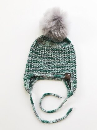 Vesta is an earflap hat, knitted in the round and finished with I-cords on the selvedges.