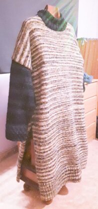 Vestido para invierno, calentito, de manga larga y cuello alto. Se puede hacer con hilos de diferentes colores o efectos, y conseguir estilos muy diferentes, desde sobrio hasta totalmente hippie.