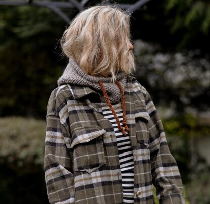 The Vianne Hood pattern includes instructions for both worsted and bulky weight yarn. Pictured in a size medium for both worsted and bulky versions on a 22 inch head circumference.