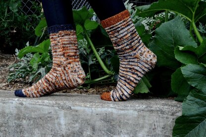 YarnDk weight yarn; 250 yards/ 229 m of Main Color; 100 yds / 91 m of Contrast Color(s); yardage varies for each circumference and foot/leg length.Sample used: Stitch Noir, DK Sock Kit; 75% Superwash Merino, 25% Nylon; 1 hank of Pumpkin head, 250 yds / 229 m; 1 mini of Black and Pumpkin 50 yds / 46 m each.