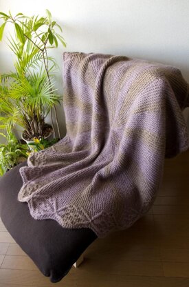 Vincennes is a large circular garter stitch throw accented with a cabled scalloped edge. The throw starts with a provisional cast on and is worked from side to side. The circular shape is formed using short rows. The two sides are then joined using kitchener stitch.