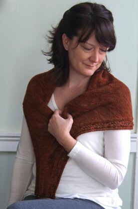 Vine is worked from side to side with the body in Stockinette Stitch and a simple lacy cable edging. The piece begins with a small amount of stitches which are increased to the largest number needed, then decreased back down to the number of stitches that were cast on.