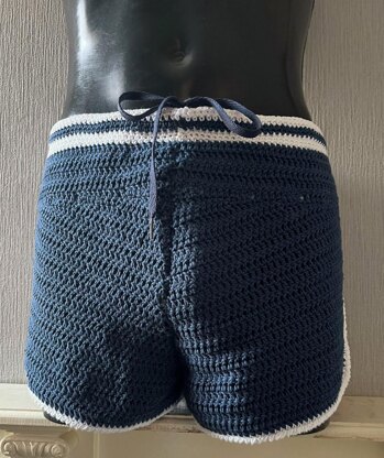 This crochet pattern is for a pair of men's short, which are definitely styed on something from the 1980s. Plain colours with a piped edging, but all made in crochet. The pattern also provides options for the side joins so you can be as daring, or not, as you want to be. The pattern includes step by step instructions on how to complete the shorts, guidance on special stitches and clear photographs for stitch placement. Crochet diagrams and symbols are also used to help with stitch placement.