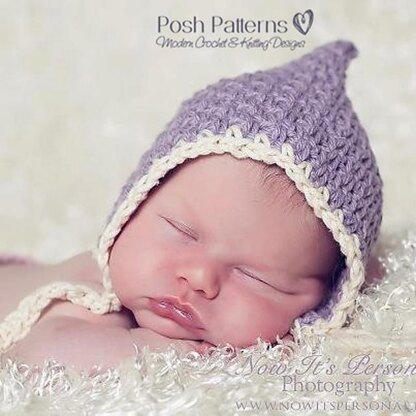 This is a crochet pattern for a precious vintage style pixie hat for babies! It's a very easy pattern, and is perfectly suitable for boys and girls. Make it in any colors to match your baby’s style. Add flowers, bows, or buttons, ect. Makes a wonderful photo prop!