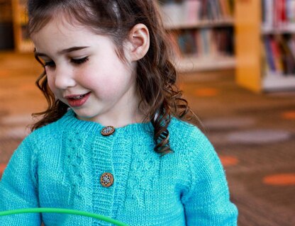 Kids outgrow their clothes so quickly, sometimes before we can finish knitting them! The original Annabel Lee cardigan has been renamed for Poe’s wife, the young Virginia Clemm, and reworked for little girls as a top-down raglan that’s easy to add length to. Paying homage to the fashions of Poe’s day, the cabled fronts of this cardigan mimic the ruffles and pleats that adorned the bodices of women’s dresses. The cable design is repeated on the back, expanding at the small of the back, as a bow would.