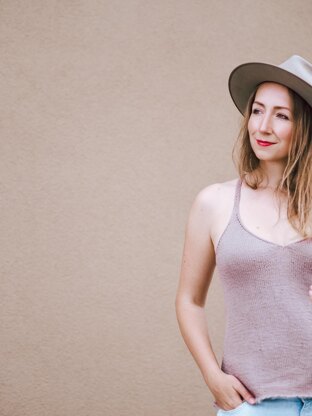 The Virginia top is a delicate, seamless, top-down knit summer garment, which sits fitted around the bust and flares easily around the hips. The back is formed through a triangular lace panel which supports the two shoulder straps and can be finished with a lace trim. Small I-cord edges flow along the neck line to the side seam, which is slightly pulled towards the front to emphasize a slim body front. The body is shaped in an A-line to allow for a comfortable fit around the hip and is finished with a small I-cord or delicate crochet lace at the hem.