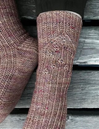 In 2017, Fiona Alice published her first design, Virva, a matching hat and fingerless mitt set in Issue 3 of Laine Magazine. Still inspired by these stitches, Fiona felt a pair of socks in the same fashion would be an enchanting addition to the set. The Virva Socks are adorned with the same textures and motifs and again, use Viola’s rustic hand dyed colours. The twisted ribbing turns into flower steams and buds which appear to be encased in a dome like structure, as if being protected by a greenhouse or terrarium. Individual patterns for Fiona’s Virva Hat and Virva Mitts can also be found online.