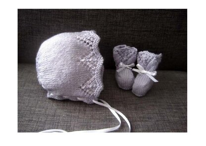 - A gorgeous traditional style bonnet and matching booties set featuring the pretty and stylish Vivienne Lace pattern.