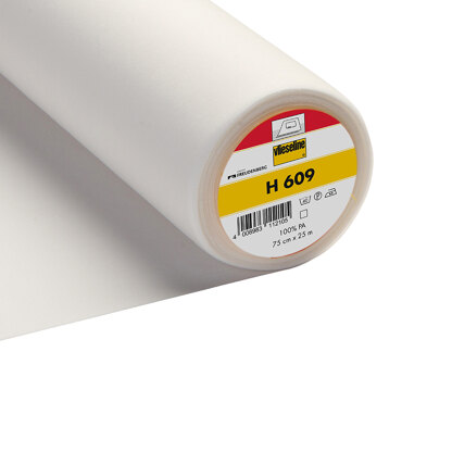 Leichtes, weiches und aufbügelbares Schuss-Zwischenfutter von Vlieseline. Besonders elastisch in sowohl Ketten- als auch Schussrichtung. Für das Verbinden von kleinen Teilen und Frontelementen von Kleidungsstücken mit besonders elastischen Stoffen wie Jersey. Geeignet für leichte und mittelschwere elastische Stoffe. 75 cm breit. Handgeschnittene Meterware, Versand in einem Stück. Maschinenwaschbar bei 40 Grad. Kann chemisch gereinigt werden.\n