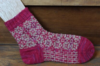 Decorate your feet with these charming colorwork socks. A pansy motif highlights your favorite hand dyed color ways.