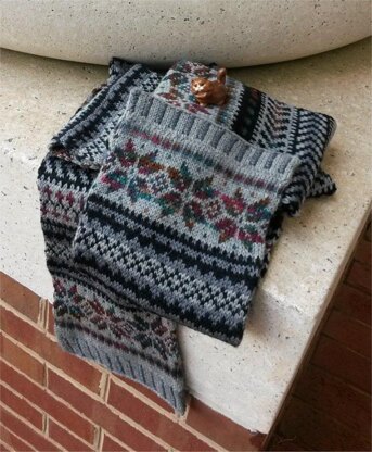 Fair Isle scarf worked in the round. You will need yarns of 4 colors: 3 solid neutral colors and 1 multicolor variegated.