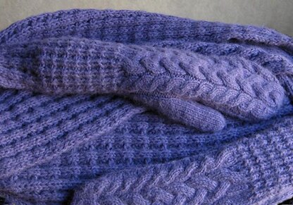 Cushy thermal rib scarf trimmed with cozy mittens with dense cables and a thick thermal rib palm.