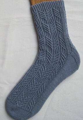 This a pattern for a pair of socks that is knit from the top (cuff) down on two circular needles, with an optional 12-inch needle. This sock features a unique Japanese cable stitch which is tight enough so that the sock is warm, however it is knit with lightweight sock yarn, making it the perfect sock to wear with all year round with almost any type of clothing that you like. The cable makes a statement, but won’t clash with any of your clothes, making the ideal sock for either yourself or a gift.