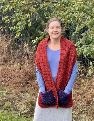 The Warmth and Beauty Pocket Shawl crochet pattern creates a beautiful pocket shawl with a lot of texture! Crochet it to the length you prefer. Add pockets if desired.
