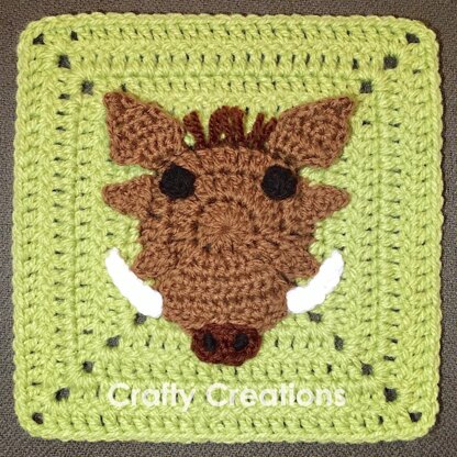 This warthog granny square is approximately 20 cm x 20 cm (8.15" x 8.15"), and can be used as a component for crocheted items such as a blanket or cushion cover. The square can be used repeatedly, or with others. This is the eleventh of my 'South African animal' granny squares, so keep your eyes open for more designs coming soon ;-)