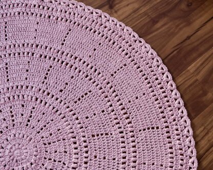 Size: The rug is approximately 39”/ 99 cm in diameter with worsted weight yarn, but will vary based on yarn and hook used.