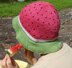 This adorable brimmed hat in watermelon colors is knitted in the rounds from bottom to top. The four sizes (extra small, small, medium and large) fits head of 16 - 22" (40.5 - 45.6 cm).