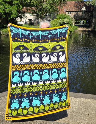 Waterside is worked using overlay mosaic crochet, and finished off with a narrow but pretty envelope border to hide the loose ends.