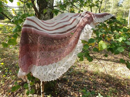 Waves of love is a crescent shaped shawl in 5 colors (or one ....). Garter sitches and eyelets, then easy lace, some short rows.