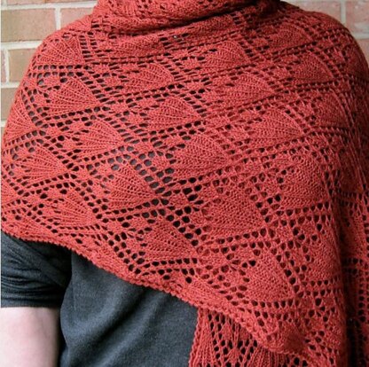 This is a pattern for a light weight wrap. It's heavier than a shawl, but just the ideal weight for a spring or fall evening, or even if you're sensitive to air conditioning in the summer. It is made up of a fairly intricate lace stitch that is virtually reversible. The lace stitch, which is one of the lessor known ones is both written out line by line, and charted. The final size is 22 inches by 74 inches. There are also instructions for an optional crocheted edging contained within the pattern, should you want it edged. Skill Level: Intermediate - Intermediate + (assuming a basic knowledge of lace knitting) The yarn used in the sample is Lorna's Laces Helen's Lace (carried doubled) in the colorway, Brick. A heavy fingering weight yarn or sport weight yarn could be substituted. The wrap was expertly pattern tested by Deb Terrio, who can be contacted at: jstdt3t@gmail.com