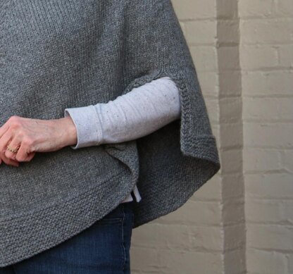A basic, classic poncho with some little details – a crossed garter collar that can be worn up or down, front shaping that comes to a point, curved back shaping, and side slits for more freedom of movement.