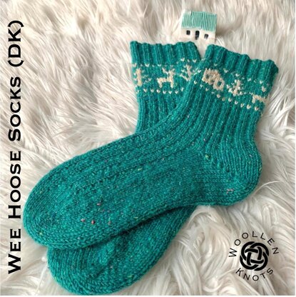 The Wee Hoose Socks are knit from the toe up in broken rib with colourwork around the top of the leg before the cuff. It seemed only right that this “Wee Hoose” motif should find itself on a pair of cozy DK weight socks.