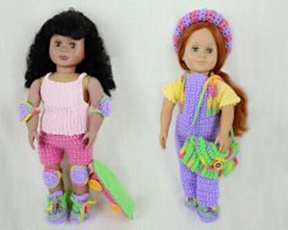 Pattern includes overalls, shorts, t-shirt and tank top, hi top tennis shoes, legwarmers and skateboard and safety helmet and pads. Mix and match.....just like Garanimals!